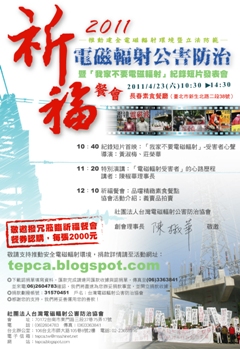 邀請支持參加 2011年 4月23日(六) 電磁輻射公害防治祈福餐會